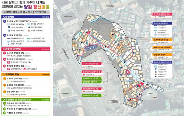 부산진구는 1960~70년대 피란민들이 함께 모여 정착된 당감1동 20~22통 일원의 광산마을을 대상으로 △위험지 및 방치 공폐가 정비 △도시가스 중앙관로 인입 △노후주택 정비 등의 사업을 진행할 예정이다.