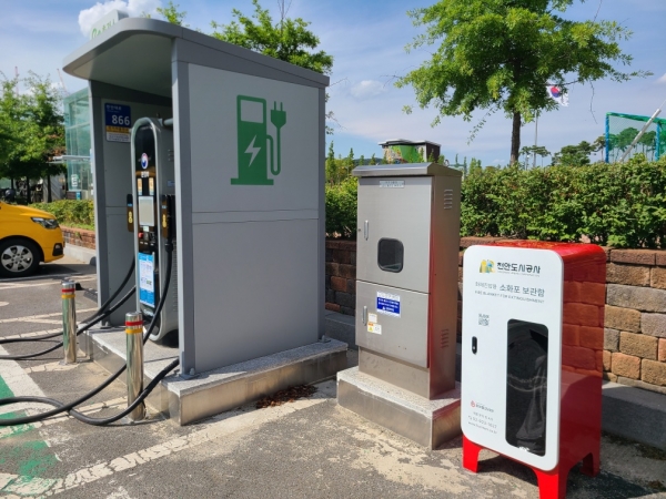[금요저널] 천안도시공사가 전기자동차 화재 발생 시 초기 대응을 위해 전기자동차 충전소 6곳에 질식소화포를 설치했다고 4일 밝혔다.
