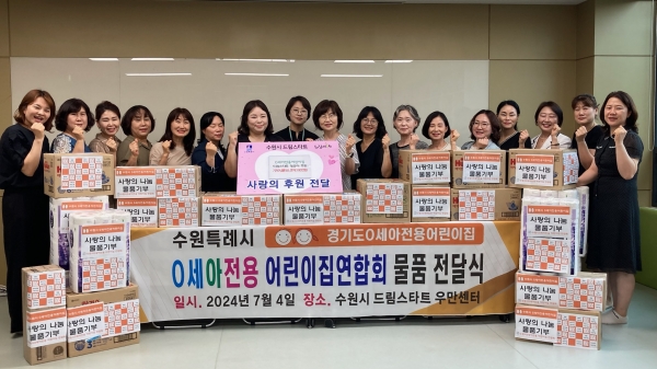 수원시 관계자는 “취약계층 영유아를 위한 따뜻한 나눔을 실천해 주신 0세아전용어린이집 원장님들께 감사드린다”며 “이번 후원이 드림스타트 영유아 가정에 큰 힘이 될 것”이라고 말했다.
