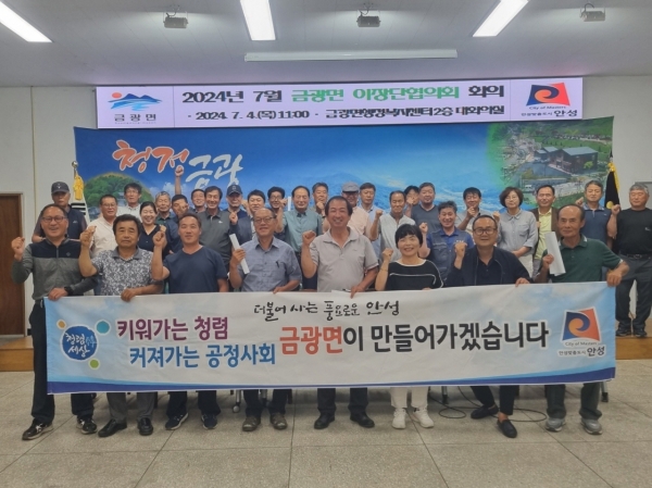[금요저널] 안성시 금광면은 갑질 문화 및 부정·부패를 척결하고 공정한 사회 조성하는데 기여하고자 2024 ‘청정금광 청렴시책’을 추진하고 있다.