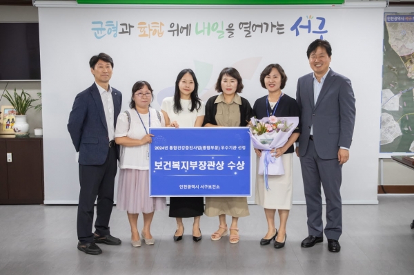 [금요저널] 인천 서구는 보건복지부에서 주관한 ‘2024년 지역사회 통합건강증진사업 평가’에서 전국 228개 보건소 중 종합부문 우수기관으로 선정되어 보건복지부 표창과 포상금 5백만원을 받았다고 밝혔다.