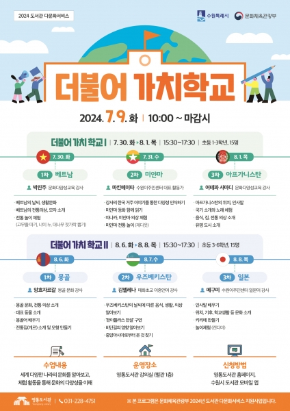 [금요저널] 수원시 영통도서관이 어린이를 대상으로 하는 다문화프로그램인 ‘더불어 가치학교’의 수강생을 모집한다.
