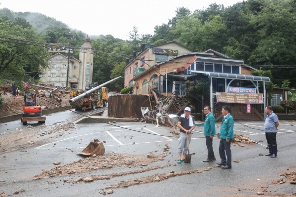 오늘 모든 일정을 취소하고 피해 현장에 점검 중인 김 군수는“간밤에 내린 폭우로 어느 마을 하나 온전하지 못하다”며 “온종일 피해 현장을 살피고 군민의 피해가 더 이상 발생하지 않도록 빠르게 복구하겠다”고 말했다.