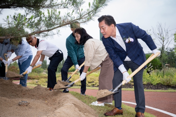 이재준 수원시장이 식수행사에 함께하고 있다.