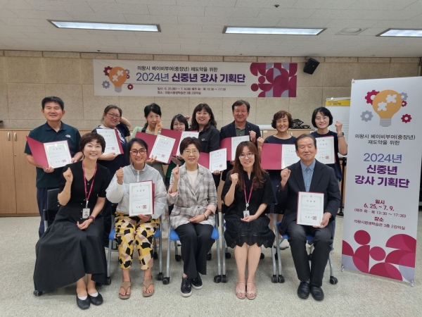 ‘의왕시 신중년 강사 기획단’은 평생교육과 ‘위풍당당 신중년 우리학교’의 ‘디지털성인문해강사 양성과정’과 기업일자리과 취업프로그램인 ‘실버인지놀이지도사 과정’의 수료자들로 이뤄졌으며 이들은 자격증 취득 후 6월 25일부터 10회에 걸쳐 강사로 활동하는 데 필수적인 강의 설계 및 홍보전략, 강의 실습 등의 교육을 받았다.