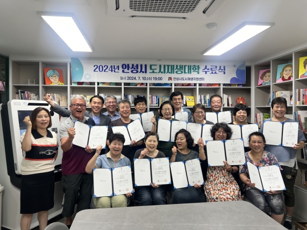 한편 안성시는 앞으로도 도시재생사업을 지속적으로 추진해 지역경제 활성화, 주민 삶의 질 향상, 도시 경쟁력 강화에 기여할 계획이며 도시재생대학 수료생 및 주민 참여를 확대해 성공적인 도시재생사업을 이끌어 갈 예정이다.