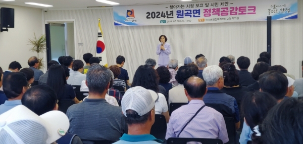 [금요저널] 지난 10일 원곡면은 원곡면행정복지센터 2층 회의실에서 원곡면민들과 김보라 안성시장이 함께하는 ‘2024년 하반기 원곡면 정책공감토크’ 행사를 개최해 시정방향에 대해 설명하고 다양한 의견을 수렴해 정책에 반영하는 소통의 장을 마련했다.