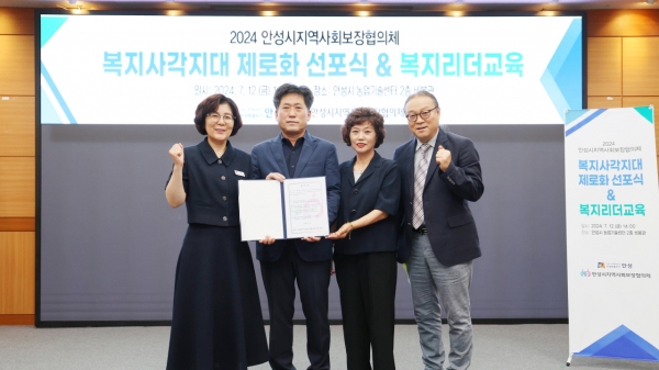 [금요저널] 안성시지역사회보장협의체[공공위원장 김보라, 공동위원장 심상원]는 지난 12일 안성시 농업기술센터 비봉관에서 읍·면·동 지역사회보장협의체 위원의 역량강화와 활동방향 제시를 위한‘복지사각지대 제로화 선포식 및 복지리더교육’을 추진했다.