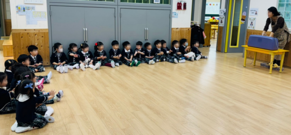 아이들을 대상으로 뷰박스를 활용한 손씻기 교육을 하고 있다.