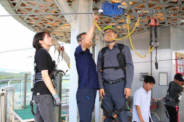 [금요저널] 의왕도시공사 권혁천 사장직무대행은 지난 19일 의왕 왕송호수캠핑장 캠핑시설 및 스카이레일 짚라인 시설 안전점검에 나서 안전 시스템 및 운영 상황을 총괄적으로 점검했다.