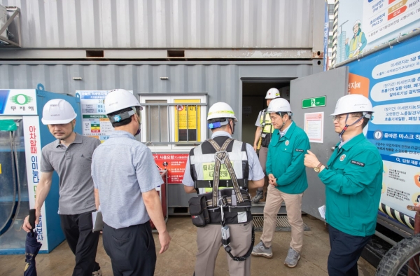 강범석 서구청장은 공사 현장 근로자들을 위한 폭염대비 안전대책을 현장 관계자로부터 청취하고 야외 작업을 하는 공사 현장 근로자의 근무환경 및 폭염대비 휴게시설 등을 돌아보았다.