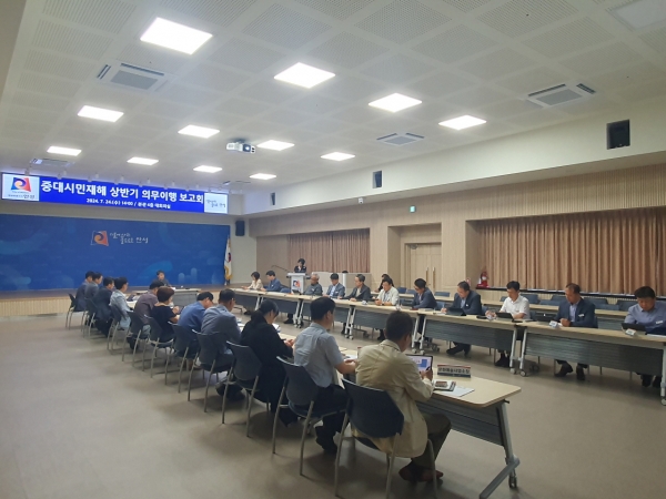 이날 보고회에는 △부시장 △국·소장 △시설물 소관 부서장 등 25명이 참석했으며 중대시민재해 총괄부서에서 상반기 의무이행 사항 총괄보고 후 부시장 및 부서장의 질의·답변 순으로 진행됐다.