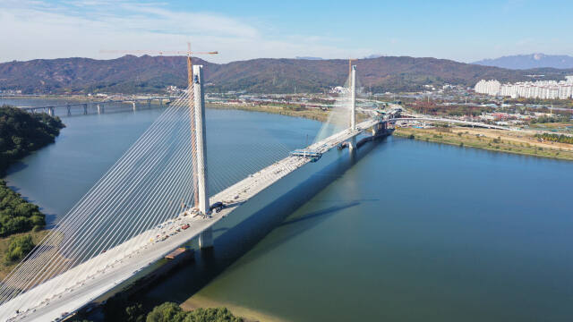 27일 경기일보 취재를 종합하면 오는 연말 준공하는 세종포천고속도로의 33번째 한강횡단 교량(이하 교량)은 길이 1천725m에 왕복 6차선으로 2016년 착공해 현재 대부분의 공사가 마무리된 상태로 해당 교량의 명칭을 두고 구리시는 ‘구리대교’, 강동구는 ‘고덕대교’ 등을 요구하면서 5년째 대립하고 있다.