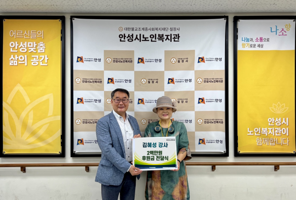 안성시노인복지관, 평생교육프로그램 김혜성 강사로부터 후원금 200만원 전달받아