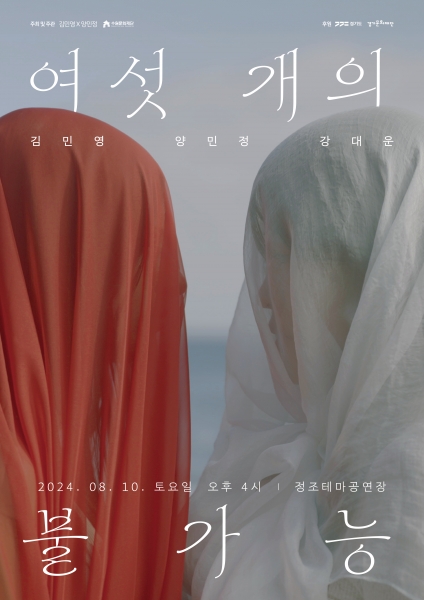 [금요저널] 수원문화재단은 경기문화재단이 지원하는 ‘2024 경기예술지원’ 선정단체 김민영과 양민정이 선보이는 다원예술공연 ‘여섯 개의 불가능’이 8월 10일 토요일 오후 4시 정조테마공연장에서 선보인다.