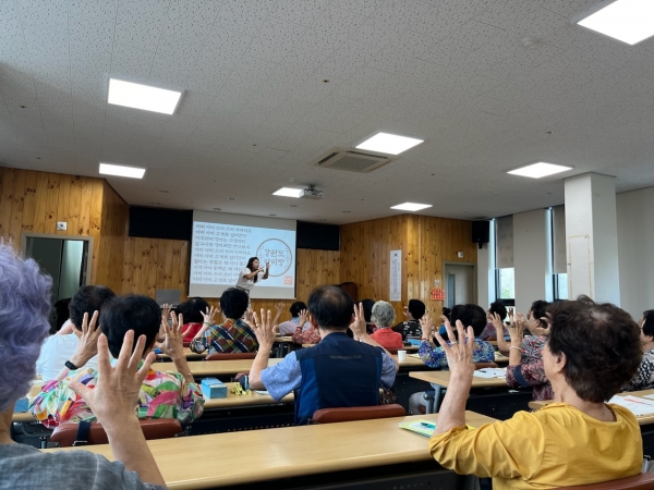 노인대학 학생을 대상으로 치매예방교실을 진행하고 있다.
