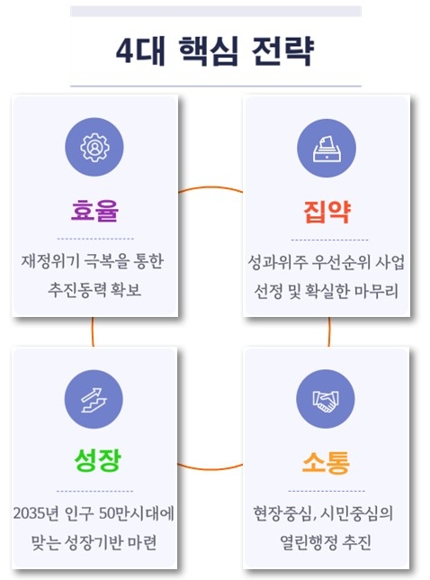 세입 확충 및 세출 혁신을 통한 재정 효율화를 꾀하고 공모사업 사전검토 및 시급성과 예산 대비 사업을 재검토하는 등 시 자체적인 재정혁신을 추진한다.