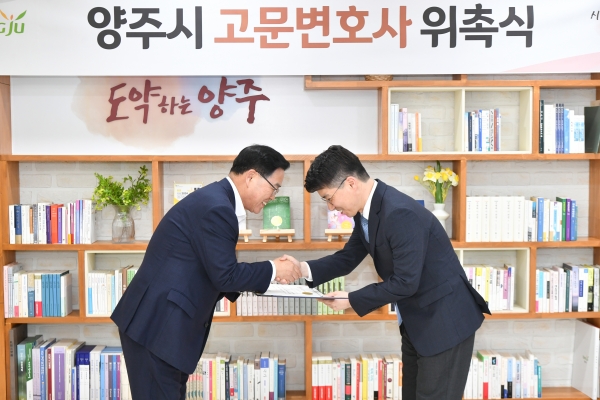 강수현 양주시장은 위촉장을 수여하며 “양주시는 성장하는 수도권 동북부 거점도시로 옥정·회천 신도시와 역세권 개발 등으로 매년 인구가 증가하고 행정 수요가 다양해지고 있어 이에 능동적으로 대처하기 위해서는 법률전문가의 조력이 매우 필요한 상황”이라며 “풍부한 경험과 전문성을 바탕으로 시 정책에 대한 공정하고 객관적인 고견을 당부드린다”고 말했다.