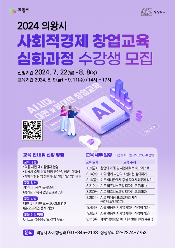 의왕시, AI 기반 사회적경제 창업교육 심화과정 수강생 모집