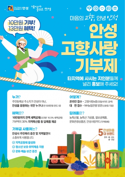 안성시, 2024년 고향사랑기부제 답례품 공급업체 공모
