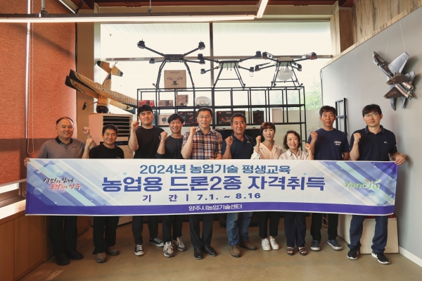 [금요저널] 양주시가 4차 산업 혁명을 선도하는 스마트농업에 발맞춰 전문인력의 체계적 양성을 위해 진행하는 2024년 농업기술 평생교육 ‘2기 농업용 드론 2종 조종사 자격취득 과정’ 개강식을 개최했다고 밝혔다.