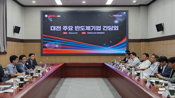 [금요저널] 대전시와 대전테크노파크는 7일 대전테크노파크 어울림프라자에서 지역의 주요 반도체기업 대표와 반도체산업 육성을 위한 간담회를 개최했다.