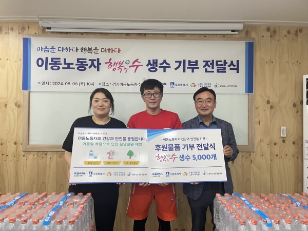 수원시 관계자는 “이동노동자들을 위해 생수를 후원해 주신 코레일유통 경기본부에 감사드린다”며 “더운 날씨에 야외에서 일하는 이동노동자들에게 도움이 될 것”이라고 말했다.