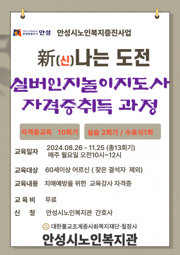 안성시노인복지관, 2024년 노인복지증진사업 ‘新나는 도전’ 참여자 모집