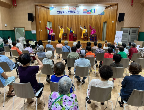 공연은 복지관 이용자 70여명을 대상으로 진행됐으며 안성 향당무 공연을 통해 어르신들이 즐거운 문화여가 시간을 보냈다.