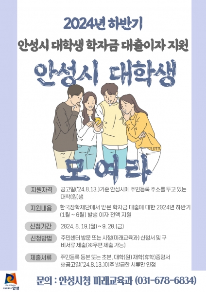 2024년 하반기 안성시 대학생 학자금 대출이자 지원, 8월 19일까지 접수