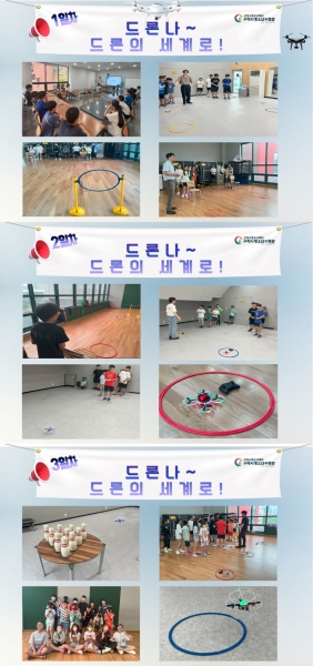 1일 차에는 드론 조종, 비행 원리, 안전 규정 등 다양한 내용이 포함된 이론 교육과 기본적인 드론 조작 방법을 배우는 활동이, 2일 차에는 ‘스카이킥’, ‘둥둥 드론’ 등 다양한 드론 기체를 활용한 드론 기술과 창의적 문제 해결 능력을 기르기 위한 장애물 통과 활동이 진행됐다.