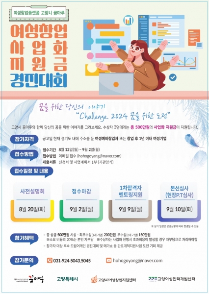 고양시여성창업지원센터, ‘2024 여성창업 사업화지원금 경진대회’ 참가자 모집
