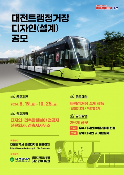 시는 이번 디자인 공모를 통해 트램 정거장을 대전시 상징성이 반영된 시설물로 만들어 시민들의 이용 편의성을 높일 계획이다.