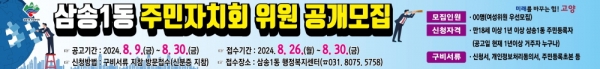 [금요저널] 고양특례시 덕양구 삼송1동이 오는 26일부터 주민자치회 위원 17명을 공개모집한다고 밝혔다.