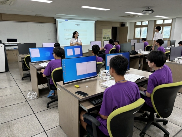 초등반은‘로봇, AI를 만나다’, 중등반은‘드론활용 AI 코딩 전문가’라는 주제로 학년별 2개 반으로 나눠 프로그램을 진행했다.