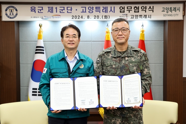 [금요저널] 고양특례시는 ‘2024 을지연습’ 기간을 맞아 지난 20일 1군단을 방문해 대화동 예비군훈련장 과학화사업 및 향후 부대이전을 위한 합의각서를 체결했다고 밝혔다.