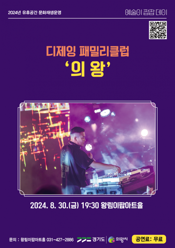 [금요저널] 의왕시는 한여름 밤 무더위를 식혀줄 디제잉 패밀리클럽 ‘의왕’ 공연을 오는 30일 오후 7시 30분 왕림이팝아트홀 공연장에서 선보인다고 전했다.