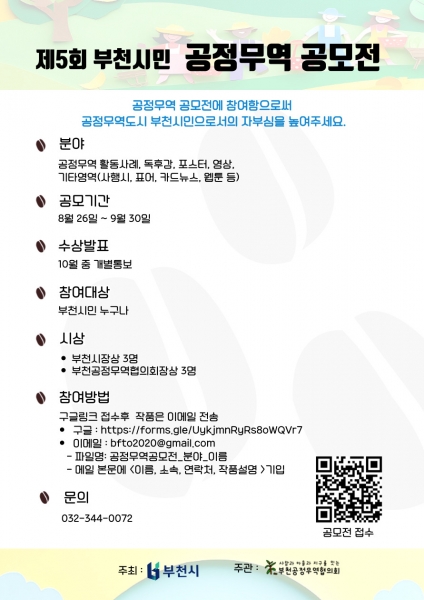 공모전은 공정무역을 주제로 한 다양한 창작물을 통해 공정무역의 가치와 공정무역도시 부천을 널리 알리고 시민들의 적극적인 참여를 독려하기 위한 것이다.