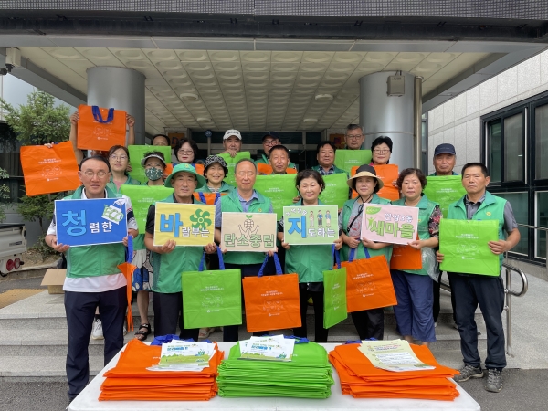 이번 행사는 탄소중립에 대한 인식을 높이고 주민들의 생활 속 탄소중립 실천 문화 확산을 위해 진행했으며 청렴 에코 장바구니 나눔과 홍보물을 배부하며 시민들의 자발적 참여를 독려했다.