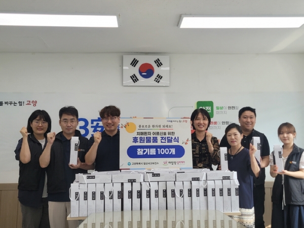 [금요저널] 고양특례시 일산서구보건소는 지난 26일 사임당실버케어로부터 치매환자 어르신을 위한 후원 물품 참기름 100병을 전달받았다고 밝혔다.