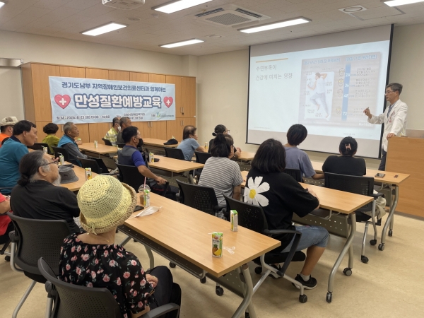 이번 교육은 한림대학교 강남성심병원 가정의학과 최민규 교수가 안성시 거주 장애인 16명을 대상으로 만성질환 예방 역량강화에 기여하고자 진행했다.