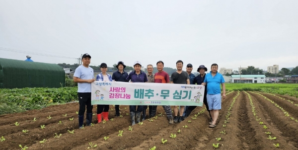 [금요저널] 고양특례시 일산동구 고봉동 주민자치회가 지난 27일 가을에 진행할 예정인 ‘고양시민 전통 김장체험 한마당’ 행사를 위한 배추와 무 심기를 완료했다.