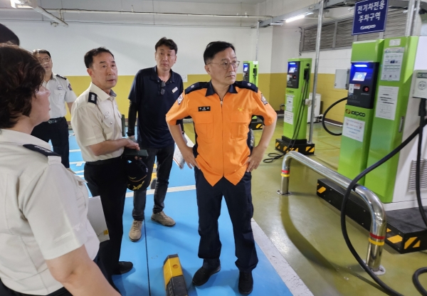 강 본부장은 현장 방문한 아파트 전기차 충전구역에 설치된 소방시설 관리 상태를 직접 확인하고 아파트 관계자를 대상으로 화재 발생 시 초기 대응 및 안전관리를 당부했다.
