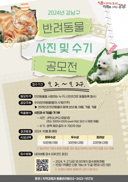 강남구, 반려동물 사진 및 수기 공모전 개최