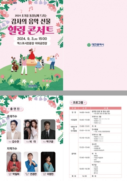 [금요저널] 대전시는 9월 3일 엑스포시민광장 야외공연장에서 5개 구 2,600여명의 대전시 전체 통장들이 참석하는 ‛2024 감사의 음악 선물, 힐링 콘서트'를 개최한다.