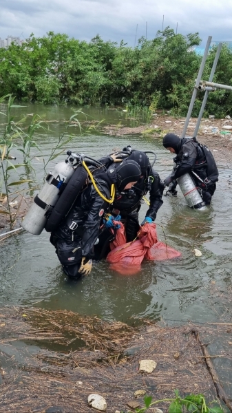 잠수부들은 3일 동안 수중에서 각종 폐기물과 오염 물질을 수거했다.