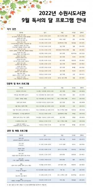 독서의 달에 운영되는 모든 독서문화 프로그램의 일정과 내용은 수원시도서관사업소 홈페이지에서 확인할 수 있다.
