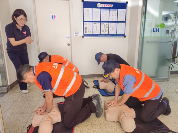 전문강사가 찾아가 입주민 25명에게 심폐소생술·자동심장충격기 이론·실습 교육, 전기자동차 화재예방·화재 시 행동요령 등을 교육했다.