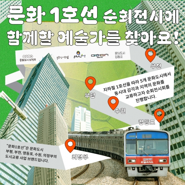 [금요저널] 수원문화재단에서는 지하철 1호선을 따라 5개 문화도시에서 동시대 감각과 지역의 문화를 교류하고자 ‘문화1호선’ 예술여행 순회전시회 참여 작가를 9월 9일까지 공모한다.
