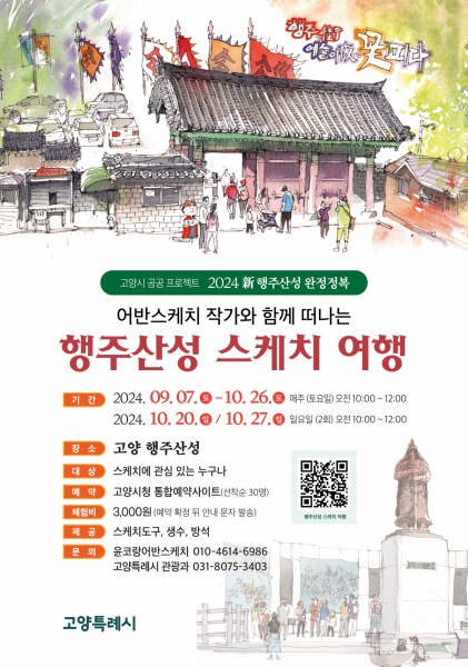 [금요저널] 고양특례시는 오는 7일부터 행주산성에서 스케치기법을 배우는 ‘행주산성 스케치여행’ 프로그램을 진행한다고 밝혔다.